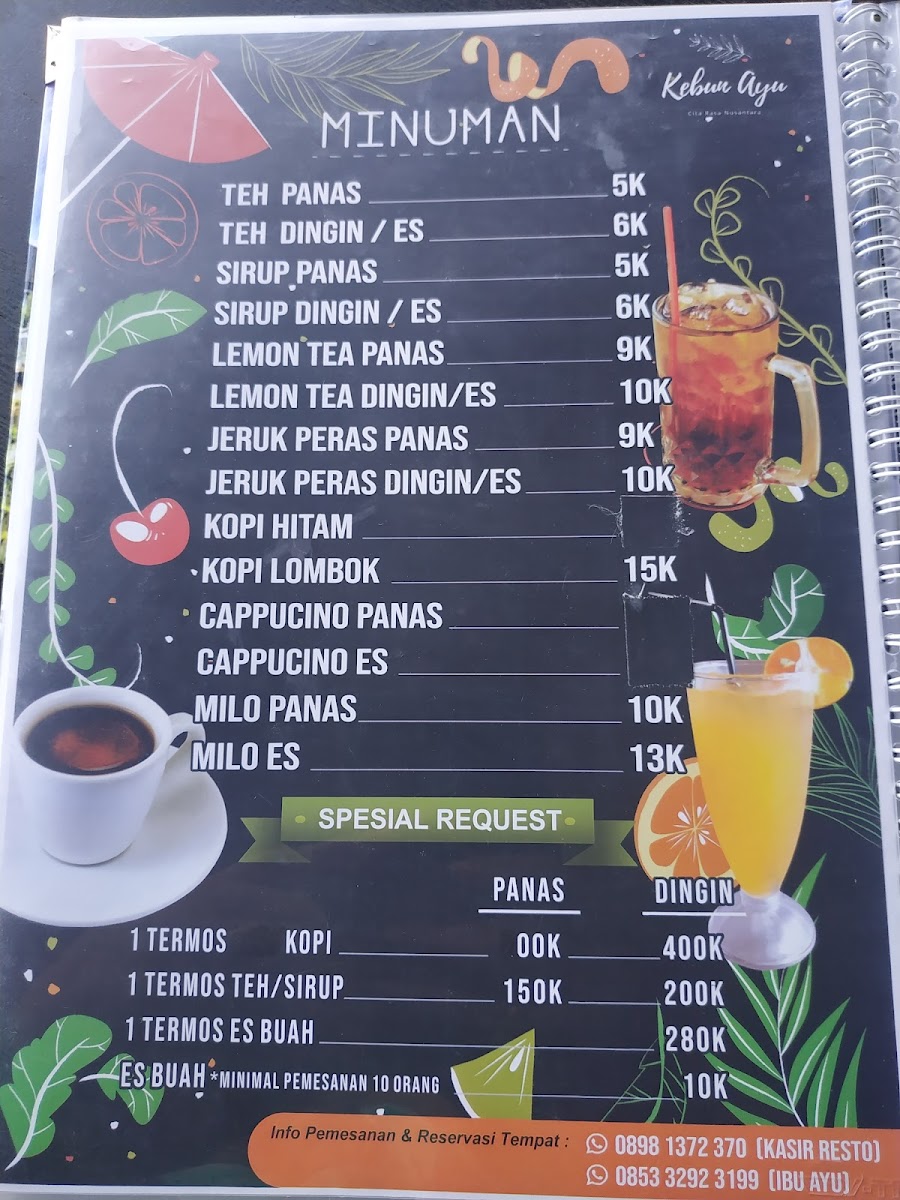 Resto Kebun Ayu Banjarbaru is a tranquil dining oasis located in the heart of Banjarbaru, Kalimantan Selatan. Nestled among lush trees and vibrant greenery, it offers a serene backdrop for family gatherings and leisurely meals. The menu features a diverse array of dishes, ranging from delectable seafood to satisfying comfort foods, though flavor consistency can vary. Diners appreciate the cool ambiance and friendly service, with improvements suggested for wait times. For a delightful experience, reservations are recommended to ensure prompt food service. This restaurant is perfect for those seeking relaxation and quality time with loved ones in a peaceful setting.